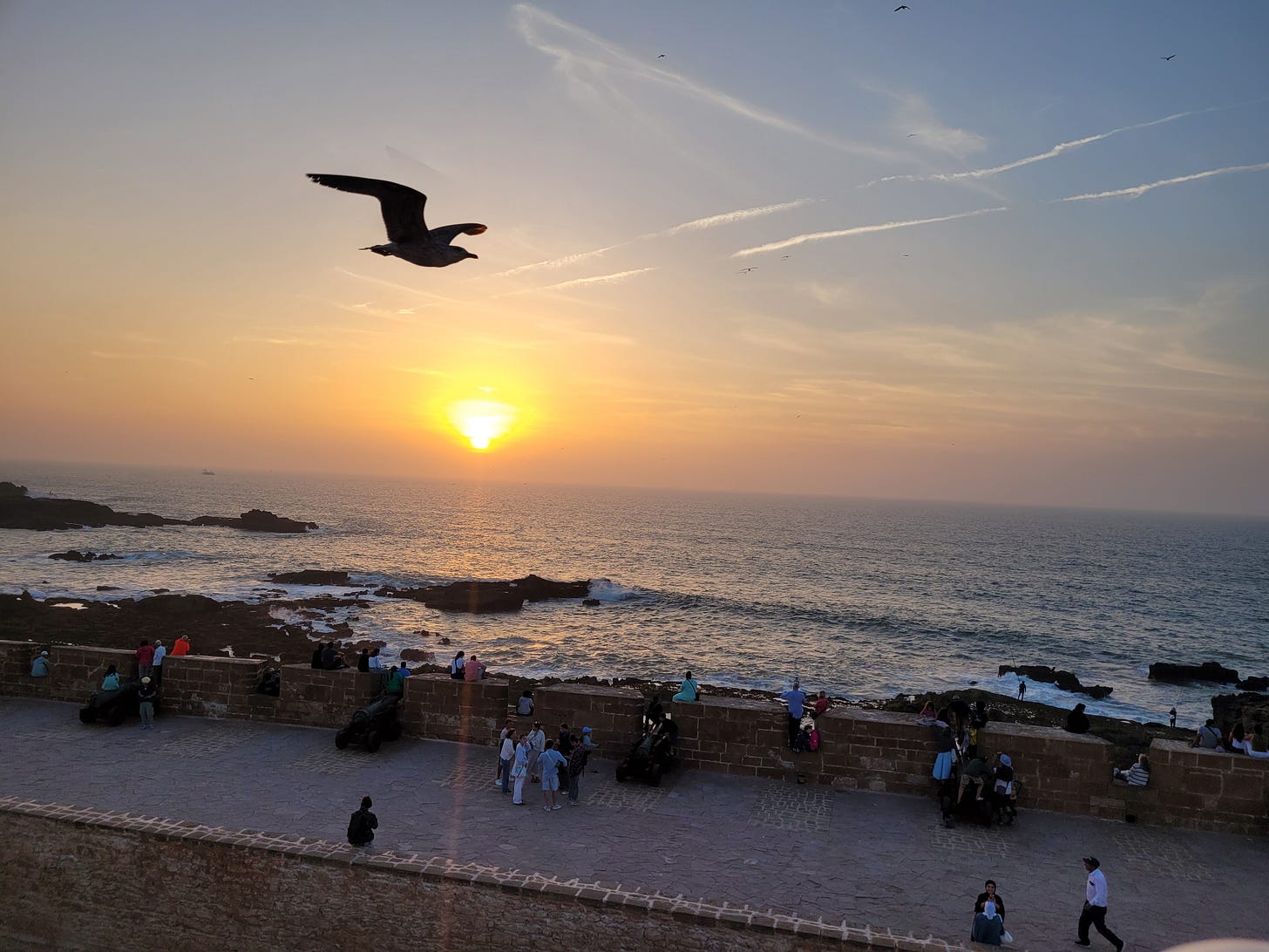 I’ll leave you with this serendipitous (thank you seagull!) sunset pic taken on the terrace of the restaurant we ate at in Essaouira.