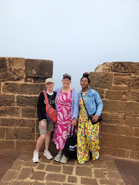 I was temporarily adopted by a German family during this excursion. They were such nice people. The 12ish and 14ish year old daughter were keen to practice their (already excellent) English and and the husband generously took my photo several times. The mom looked happy not to have to pay too much attention to anyone at that hour of the morning! They also adopted a young woman who was born in Benin and lived in the Congo before becoming a nurse in Germany. She was dressed like she was on a fashion shoot. The groggy Germans and I were really impressed!