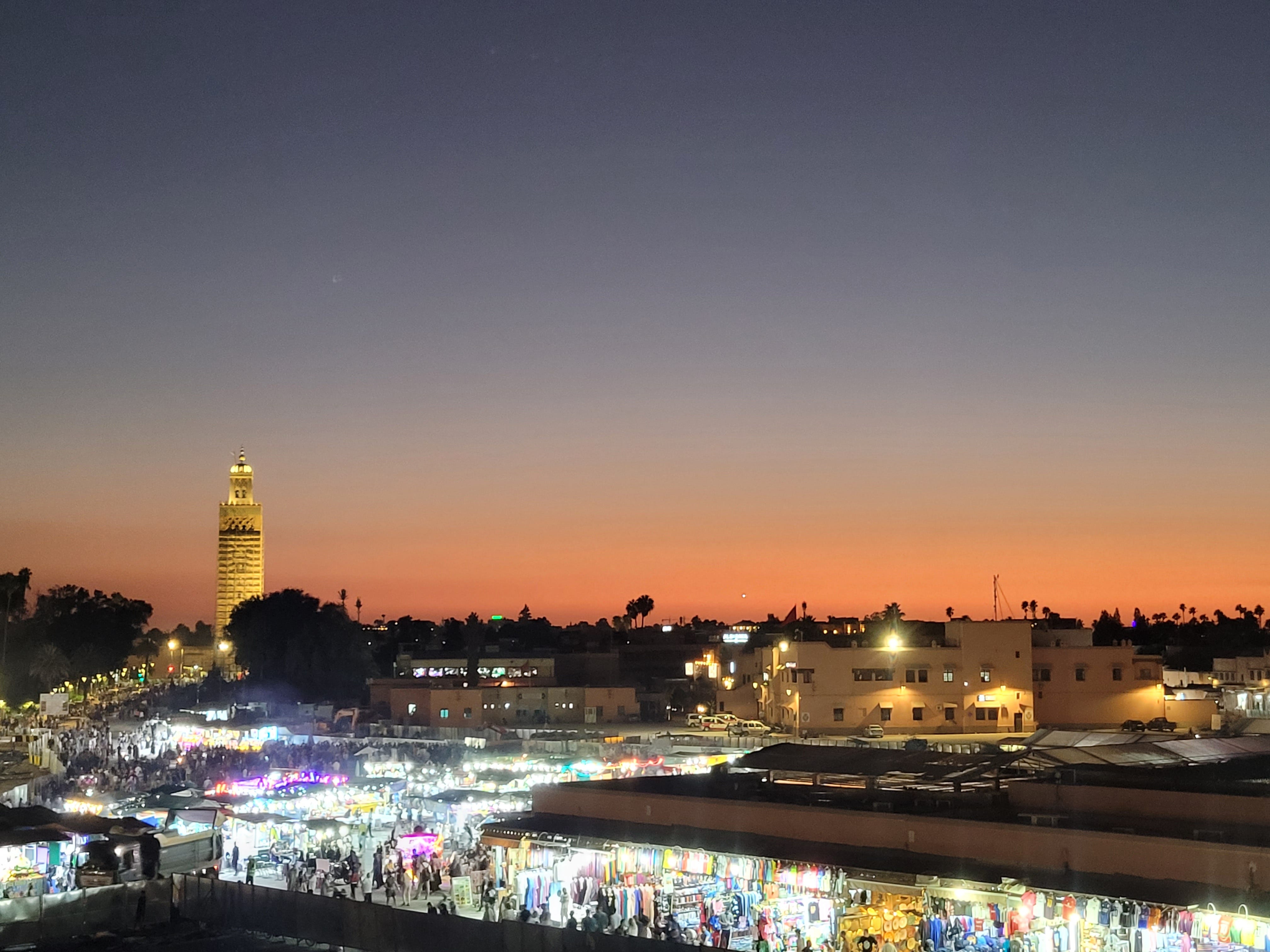 Jemaa Ee-Fenaa from a lovely terrace just after sunset that first night.