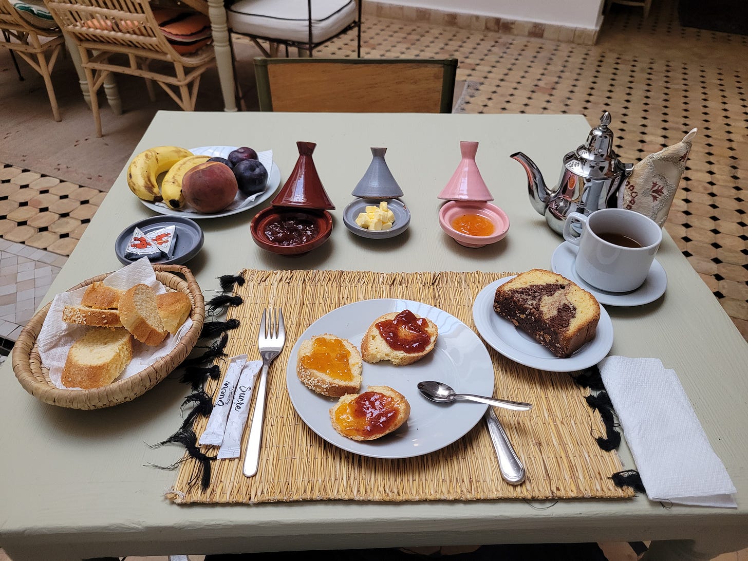 Khalil, was such a kind guy that when he found out I was gluten free he went 5km out if his way on his off time to find me GF baked goods for breakfast. I hadn't mentioned it on my booking form because I didn't want to be a bother and had brought my own bread but he looked physically pained when I declined the breads he offered at breakfast and explained why I couldn’t eat them. My Canadian need to not be a bother clashed strongly with his Moroccan need to be a good host. He looked very serious and said he would have to go find me some. I tried to dissuade him but no luck. And really, he found such great breads that I am glad I didn’t dissuade him!