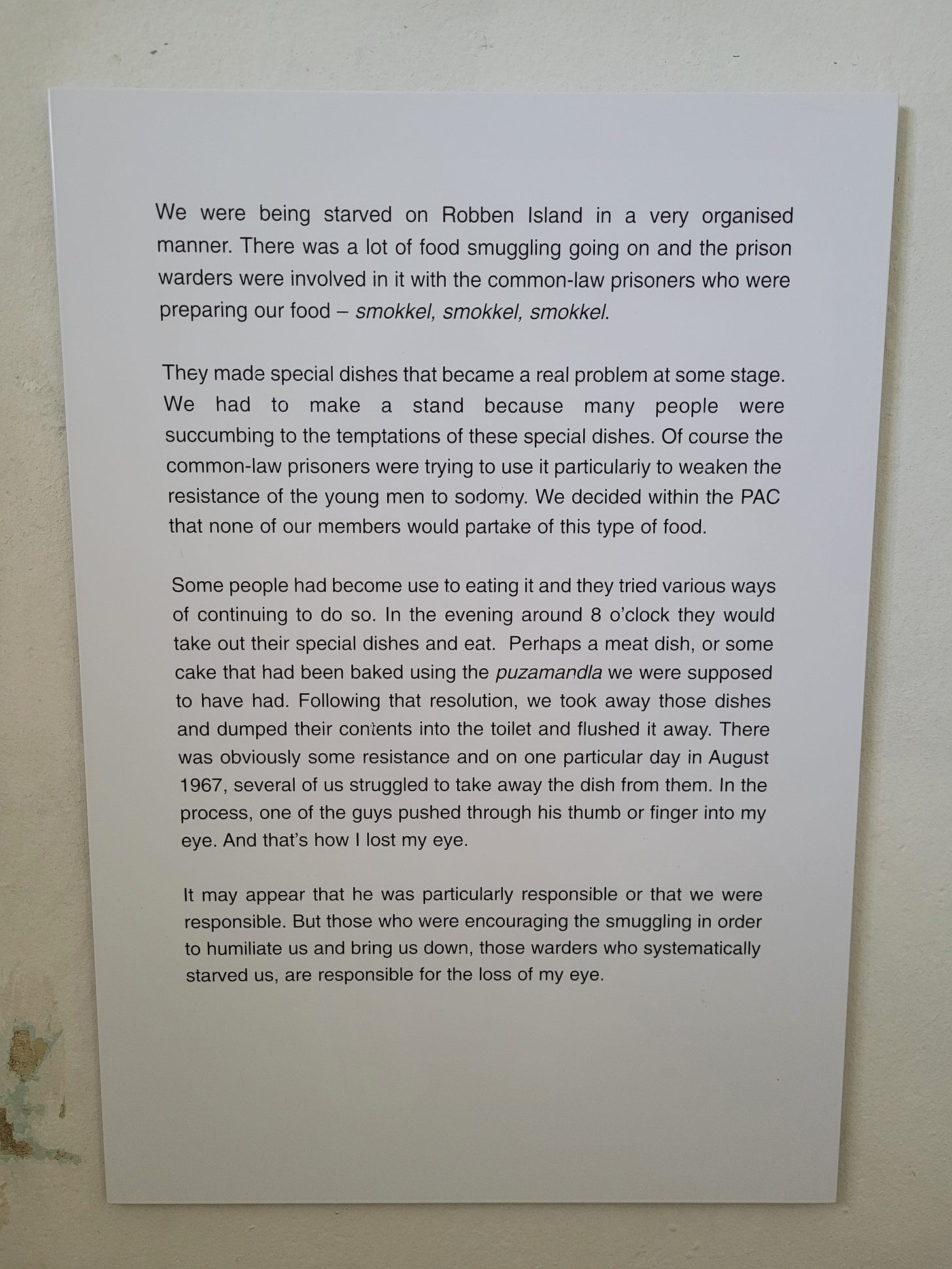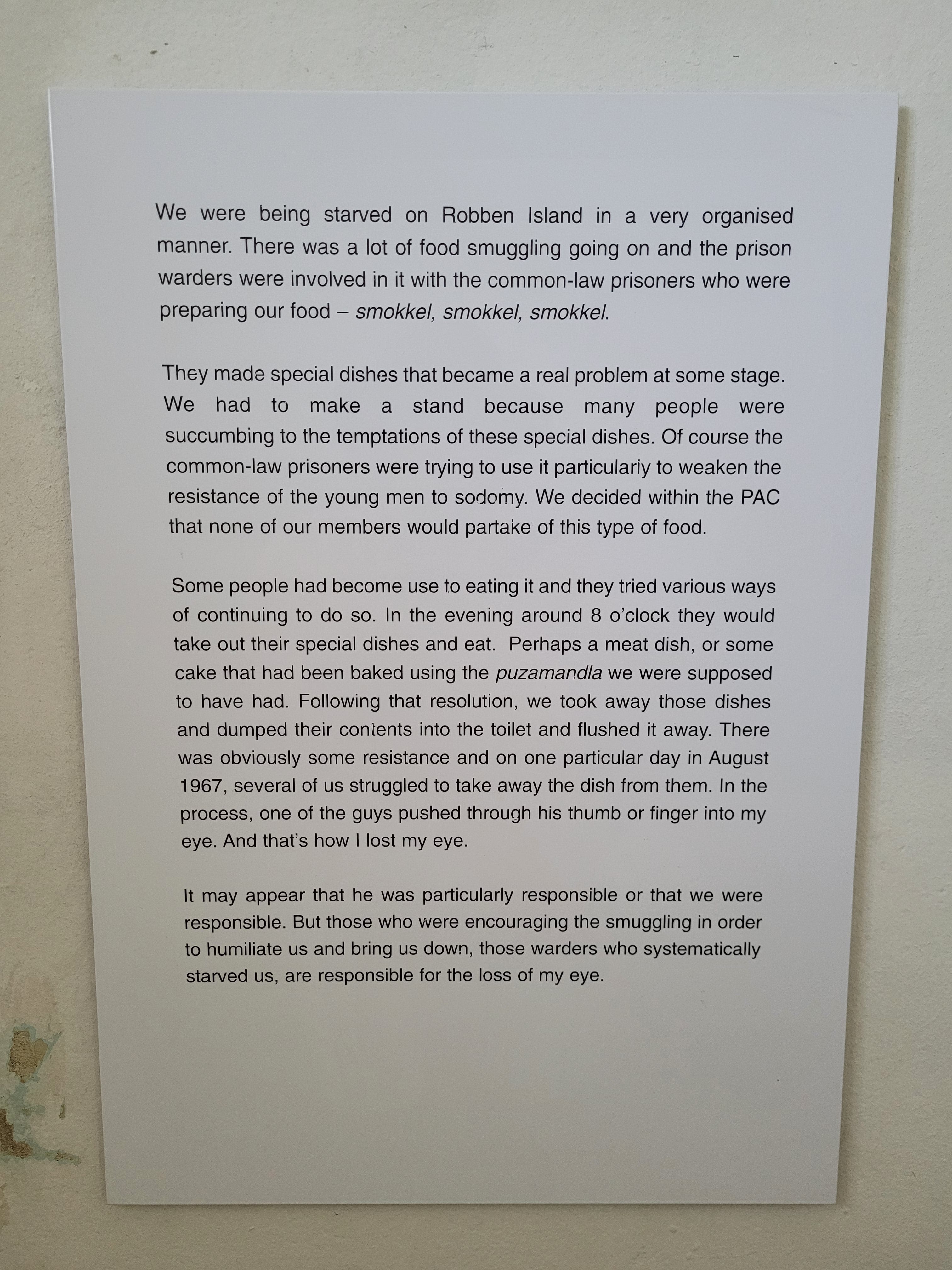We were greeted by a man who survived twice being locked up at Robben Island. At the end I quietly asked him if it was hard to come back and he said, “very.” He talked about PTSD and flashbacks and not being able to make it through some days b/c he would black out and need someone to take him home. He said he still has bad days but also wants to tell his story and the story of the others. He did it with alot of dignity in spite of people talking on their phones (seriously!) and chatting with each other.